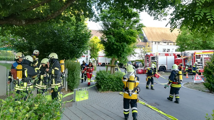 Gemeinsame Übung der Feuerwehren Dörflingen, Gailingen und Büsingen im Kindergarten Büsingen.